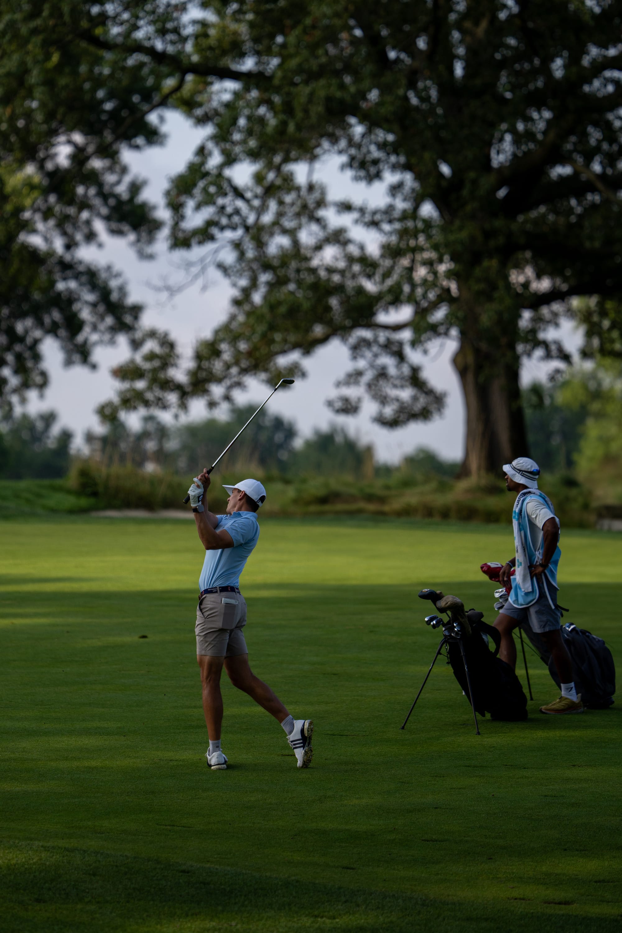 On a cool August morning, I brought my dad along as my photography assistant to capture the action. The Picard Cup is a 54-hole, two-person event played over two days, featuring Better Ball and Alternate Shot formats. The field included top mid-amateur and senior-amateur players from across the country, many supported by Canterbury’s respected caddie program. That same program taught my brother the value of hard work and etiquette 30 years ago, and it remains strong today. In 2024, three of the seventeen Western Golf Association Evans Scholars came from Canterbury, with two more named in earlier this year.