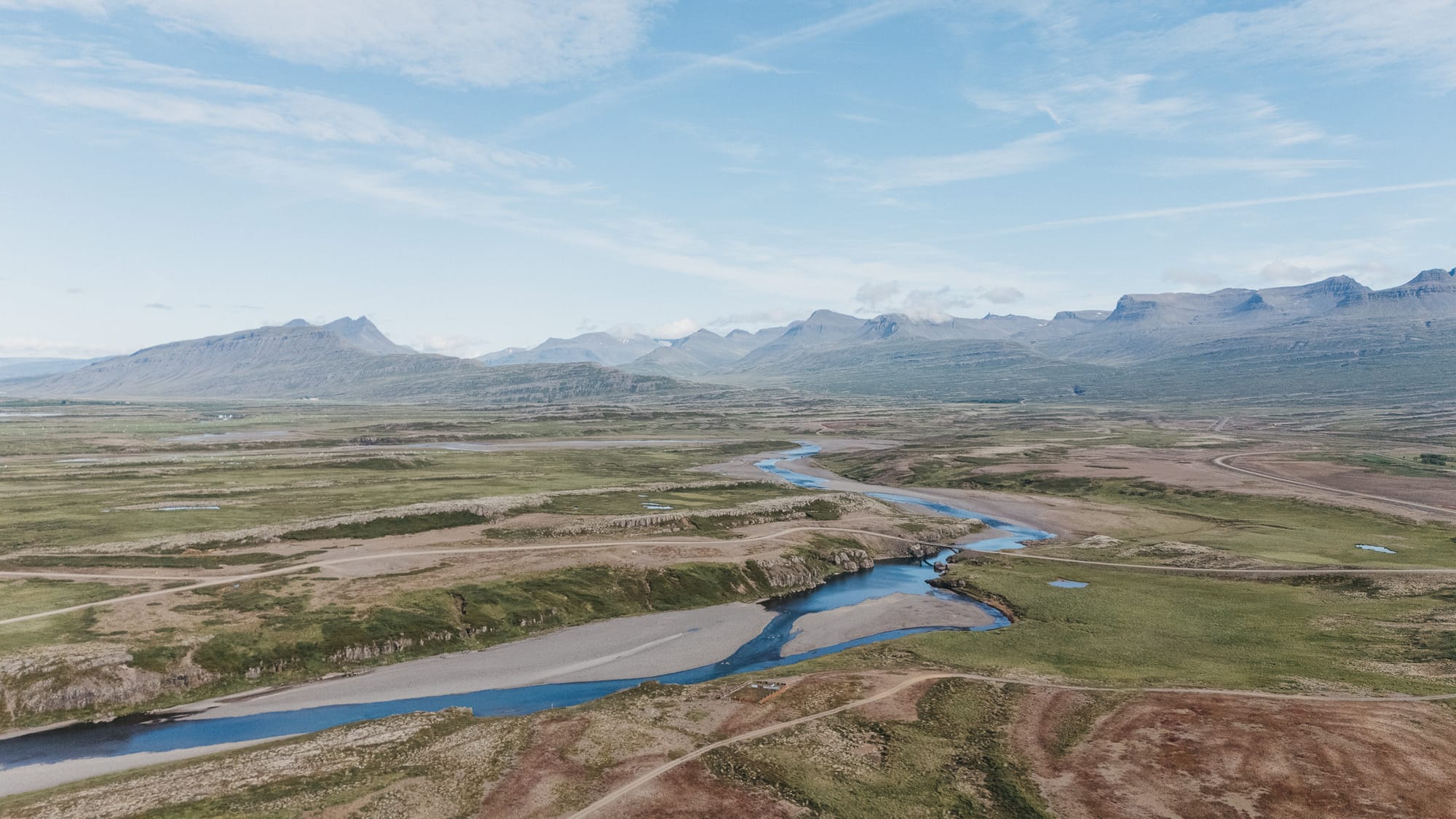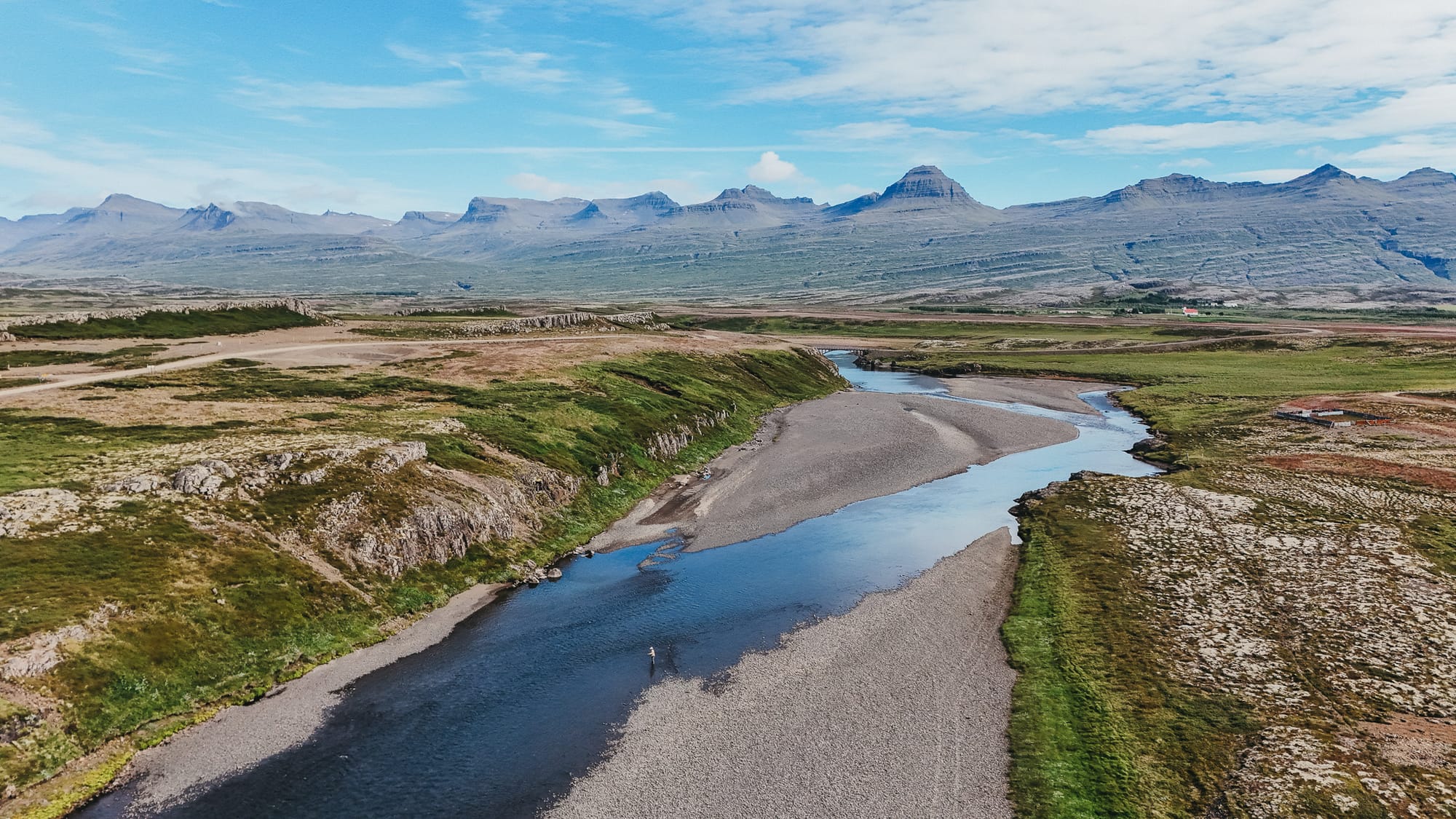 Our second lodge was on the East Ranga River. When we arrived, the weather turned. Turned in a good way. Seventy-five degrees, blue sky, unseasonably warm — the kind of day that apparently doesn't happen much in Iceland, judging by everyone's glee. We'd already seen what a typical summer there usually looks like: cold, rainy, windy, the kind of conditions that feel like October on the East Coast. But this day was something unexpected.