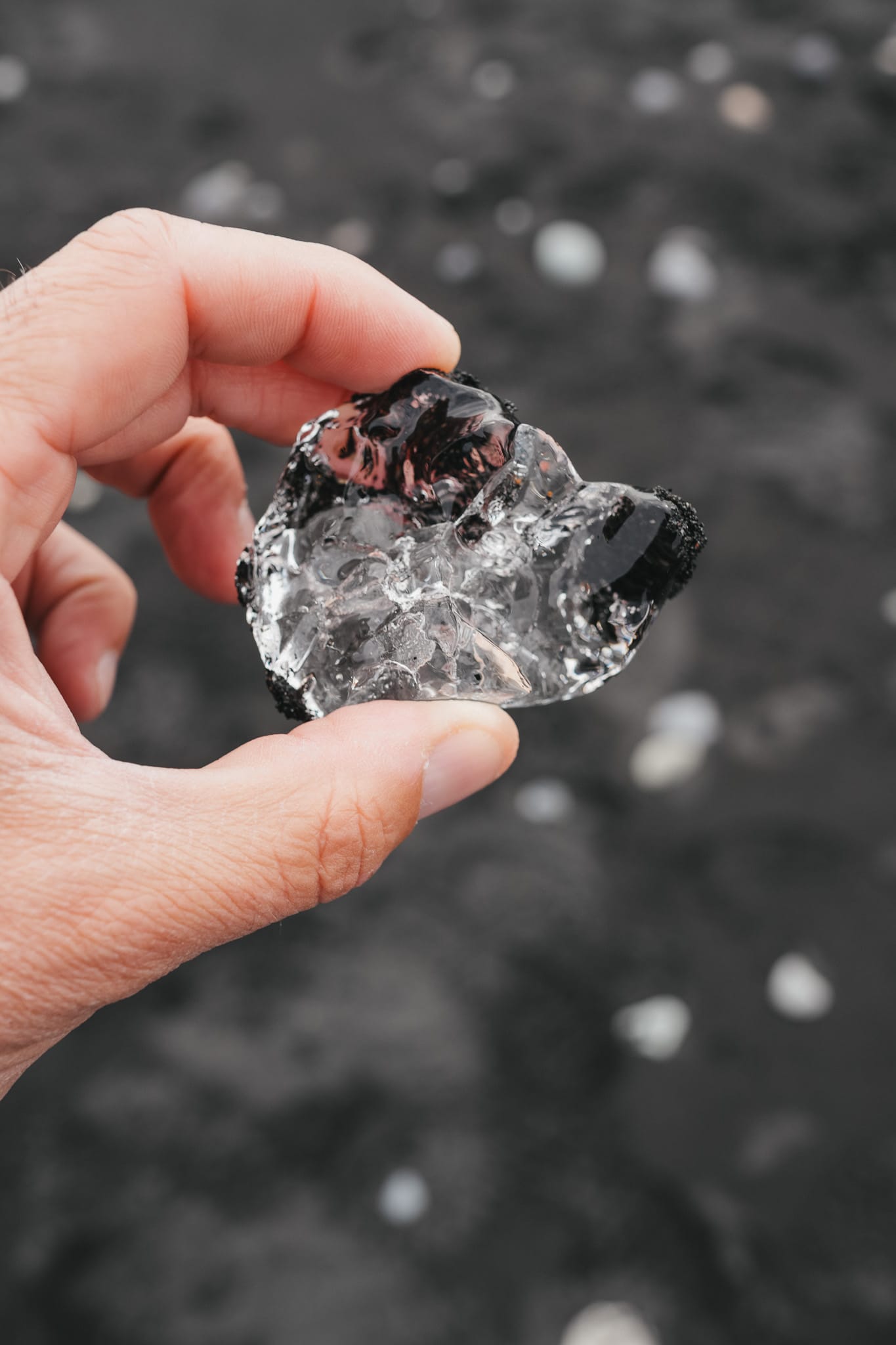 My kit and a piece of glacier at Diamond Beach near Jökulsárlón glacier lagoon.