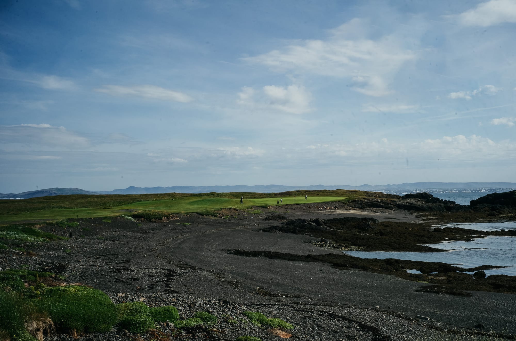 Keilir Golf Club. Fifteen minutes from downtown Reykjavik, with a links-like front nine routing through ancient lava flows along the water before turning onto a peninsula for the back nine. Clifftop holes, blind shots, wind. One of the most played courses in the country.