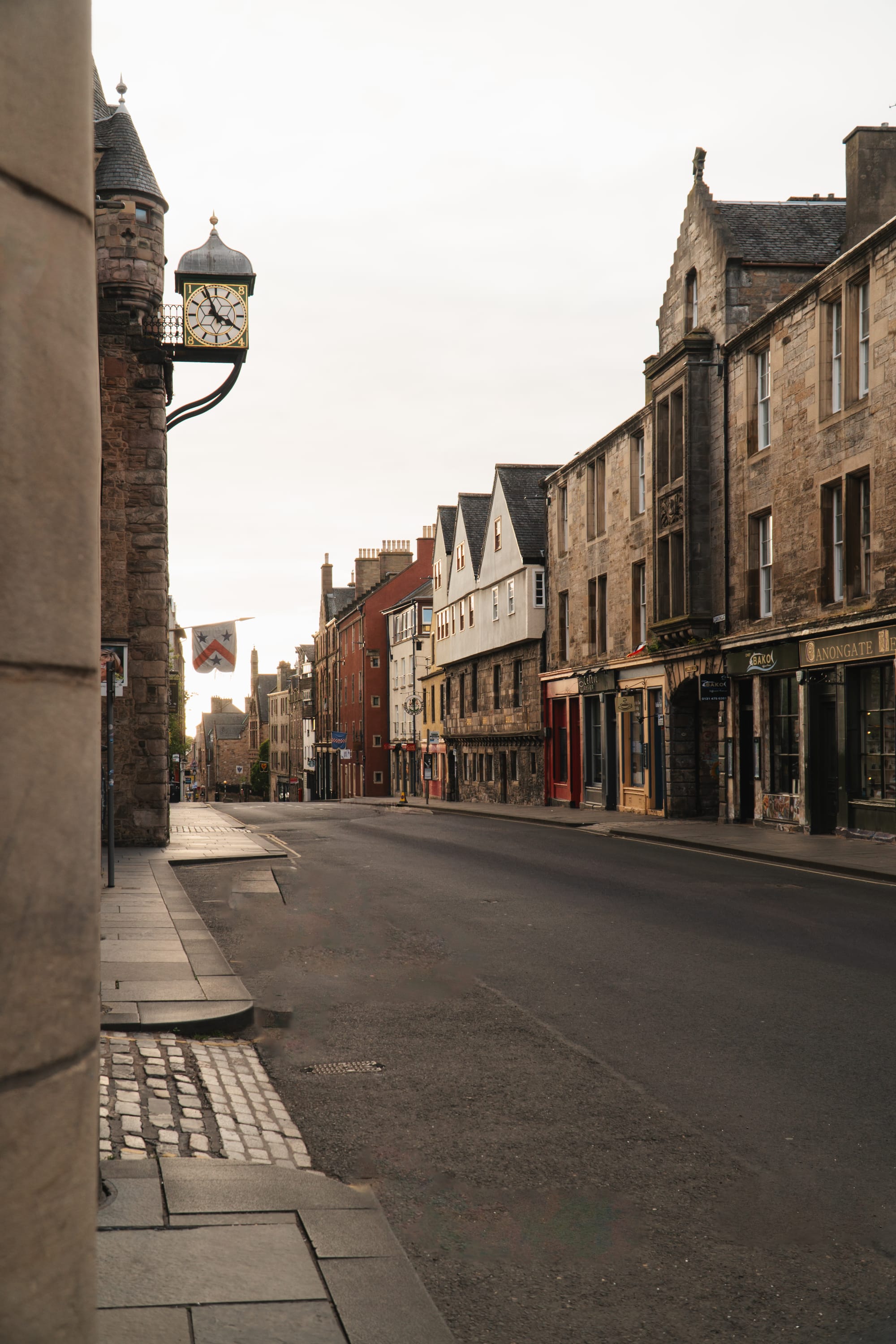 Some mornings, the alarm rings earlier than anticipated, making it challenging to begin the day with enthusiasm. However, on this particular morning, I promptly rose, took my camera, and quietly exited the flat onto Victoria Street. The street, typically crowded with thousands only hours prior, many eager to photograph the iconic multi-colored shopfronts, was now completely deserted. Ascending the hill towards George IV, I climbed the stairs to the second level for a fresh perspective and unexpectedly bumped into a red fox searching for leftover food. To avoid startling the animal, we briefly acknowledged each other before continuing about our business. With no one else in sight, I proceeded along Upper Bow toward Lawnmarket and the entrance of the Castle.