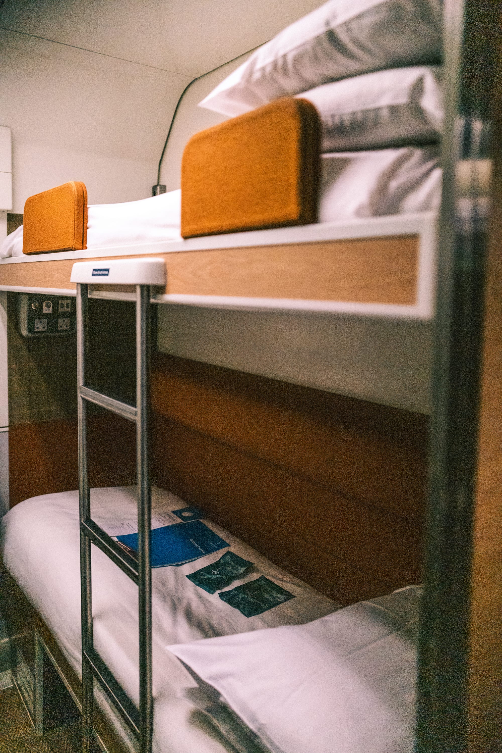Once aboard, and with luggage stored, it's time to settle into the cabin - which is pretty easy, as it's roughly the size of a closet. Sleeper trains are having a moment, and this is not as luxurious as, say, Belmond's Royal Scotsman, but it is utilitarian. The bed and pillows are comfortable, and the cabin layout is well thought through, with space to store luggage and conveniently accessible outlets and switches. Form follows function, and in this case, it's a perfect little nook to spend an evening.