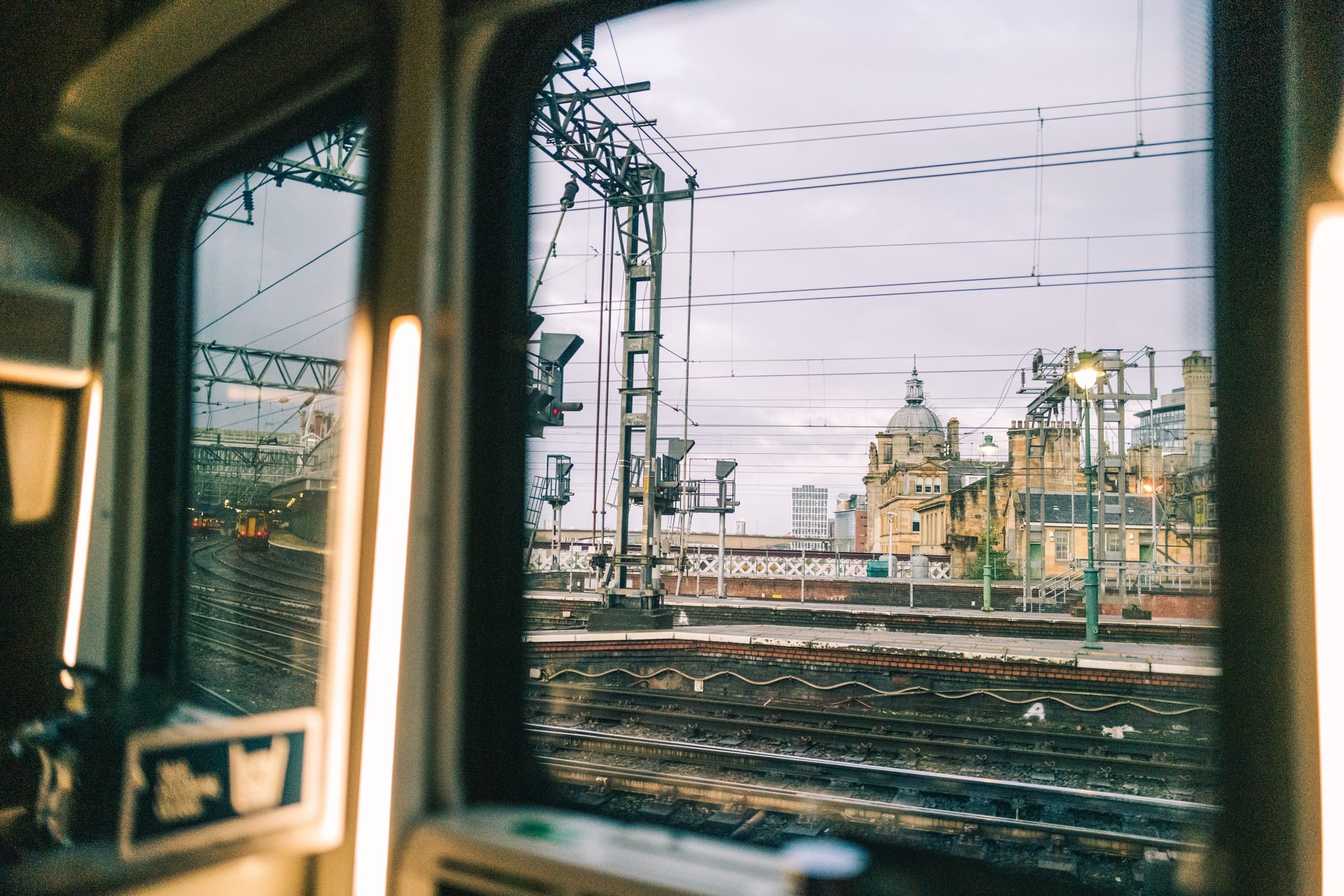 The train rumbles along through the night, the gentle swaying serving as a calming sleep aid. The first rays of twilight creep over the horizon as we make our way through the farms and fields of the Scottish Lowlands. The only disruption comes at dawn in Carstairs, where the train splits into two - the front half bound for Glasgow, the back half for Edinburgh. But soon the train gently starts moving again, with the promise of a final 90 minutes of sleep before we arrive in Glasgow.