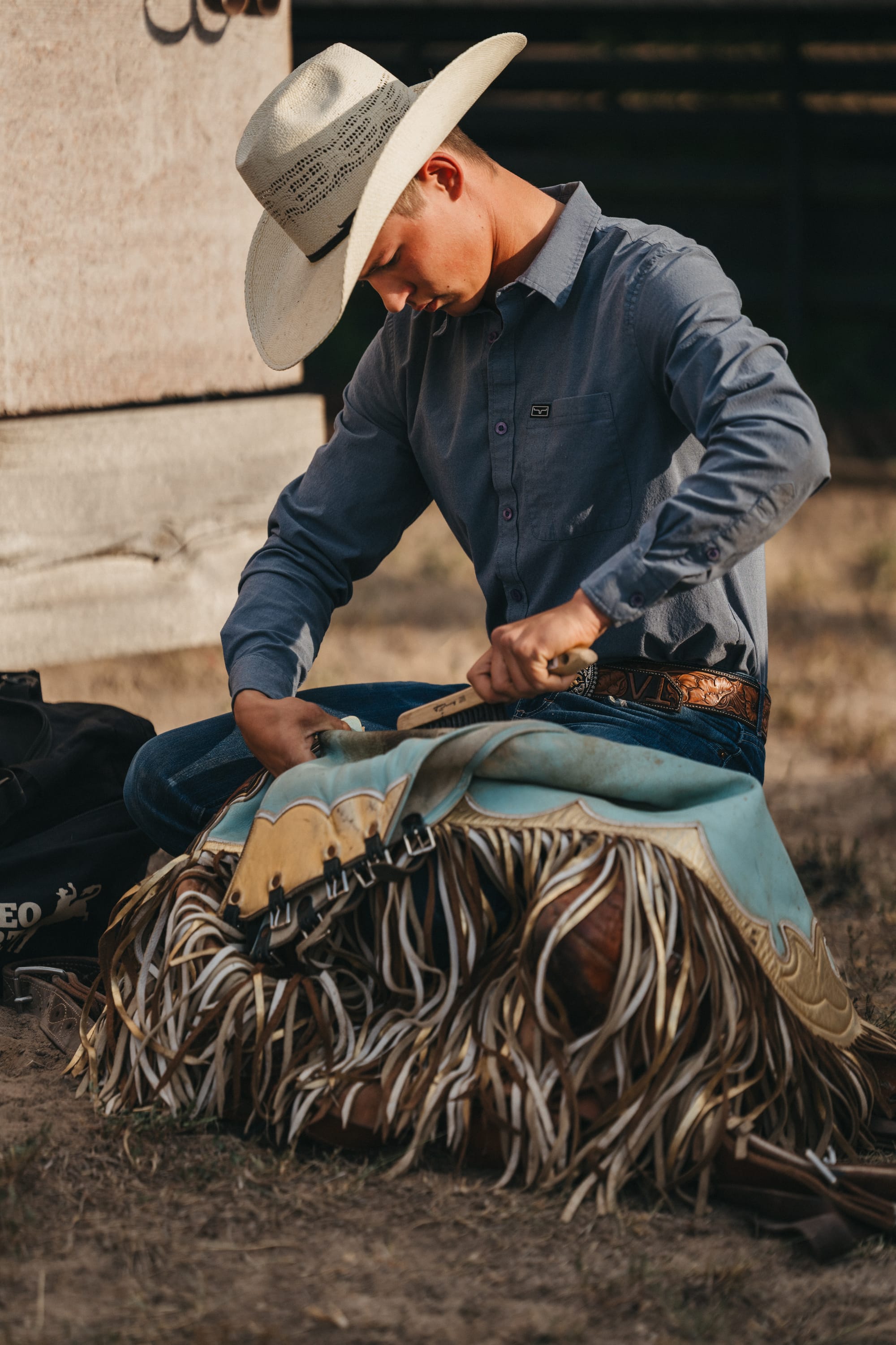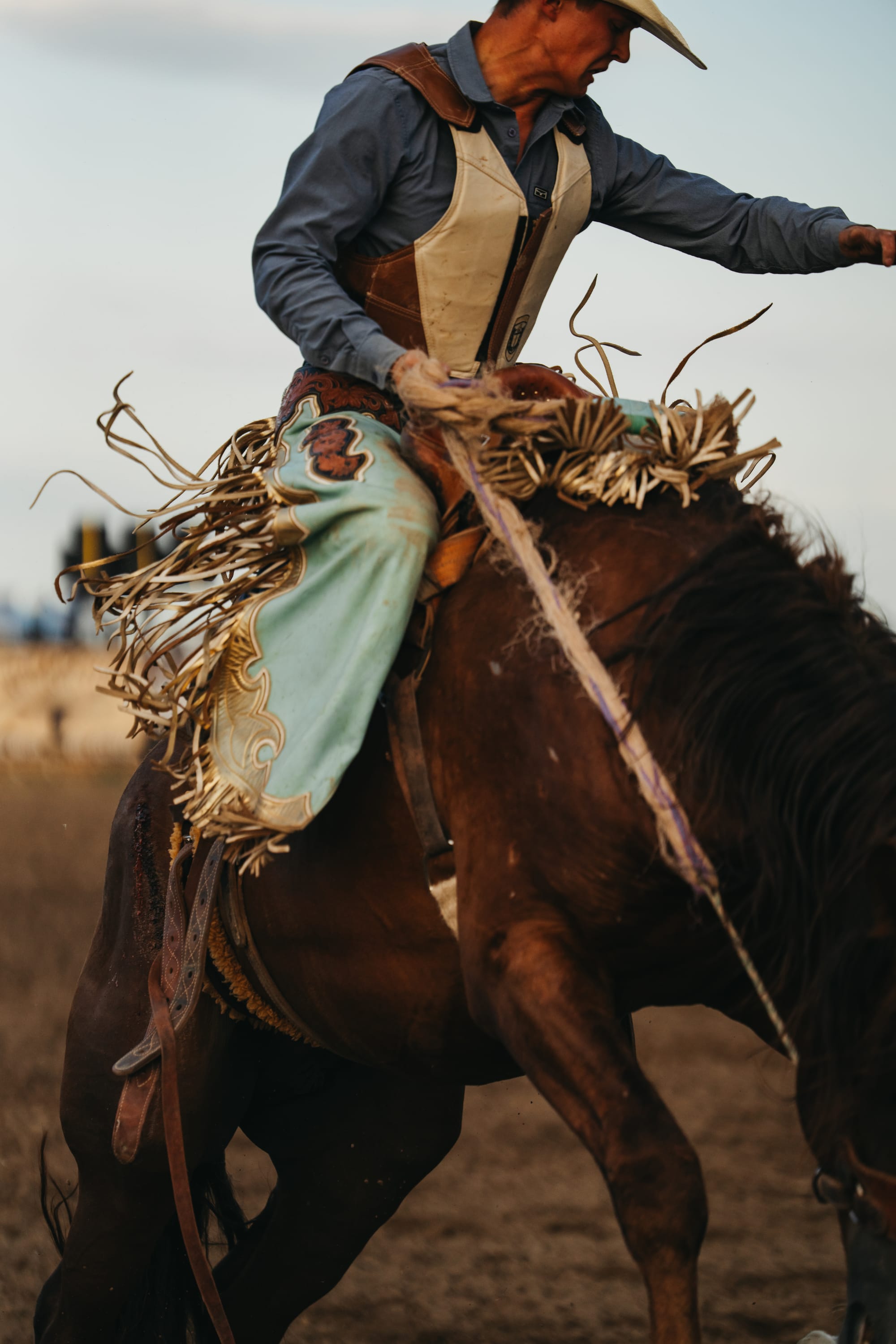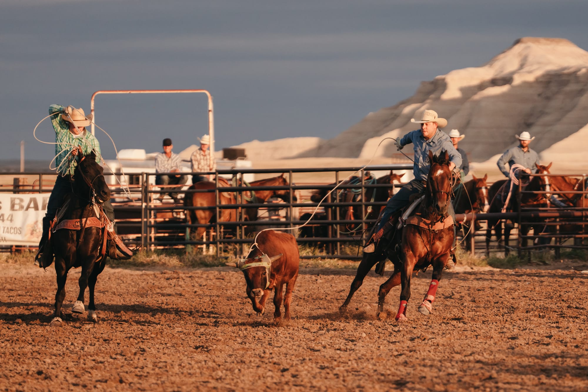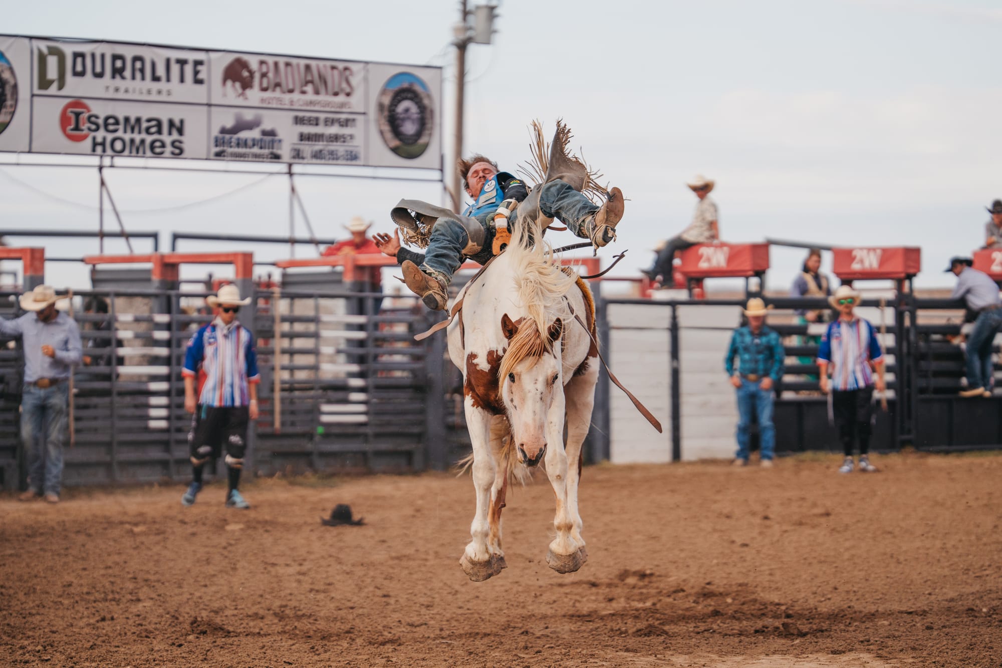 A late-summer rodeo in a small town in the western United States presents an atmosphere distinct from anywhere else in the world. Interior, South Dakota, in the middle of the Badlands, hosts the state’s oldest rodeo each year. As evening approaches, anticipation builds while families arrive in pickup trucks and form a circle around the ring. Bulls and broncos wait in close quarters, occasionally jostling for position. Meanwhile, participants, some barely out of high school, and others with boots older than that, methodically prepare their gear, brushing down their chaps and taping wrists and shoulders that remain sore from prior competitions.