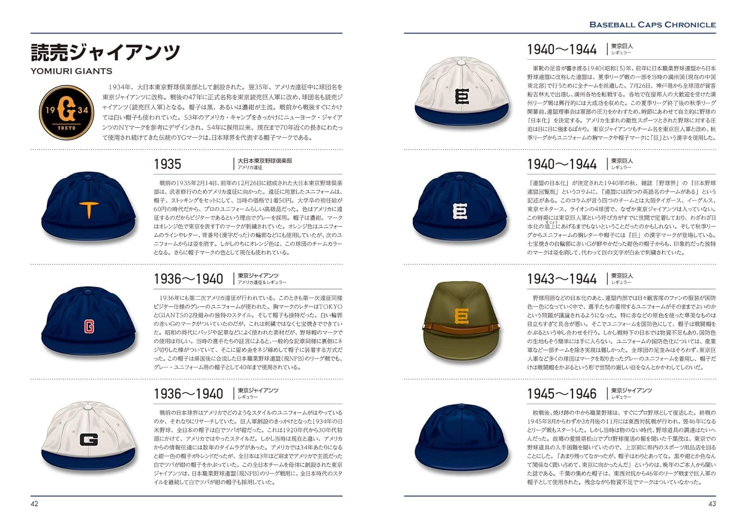 The early cap history of the Yomiuri Giants as illustrated in Masataka-san's Baseball Cap Encyclopedia