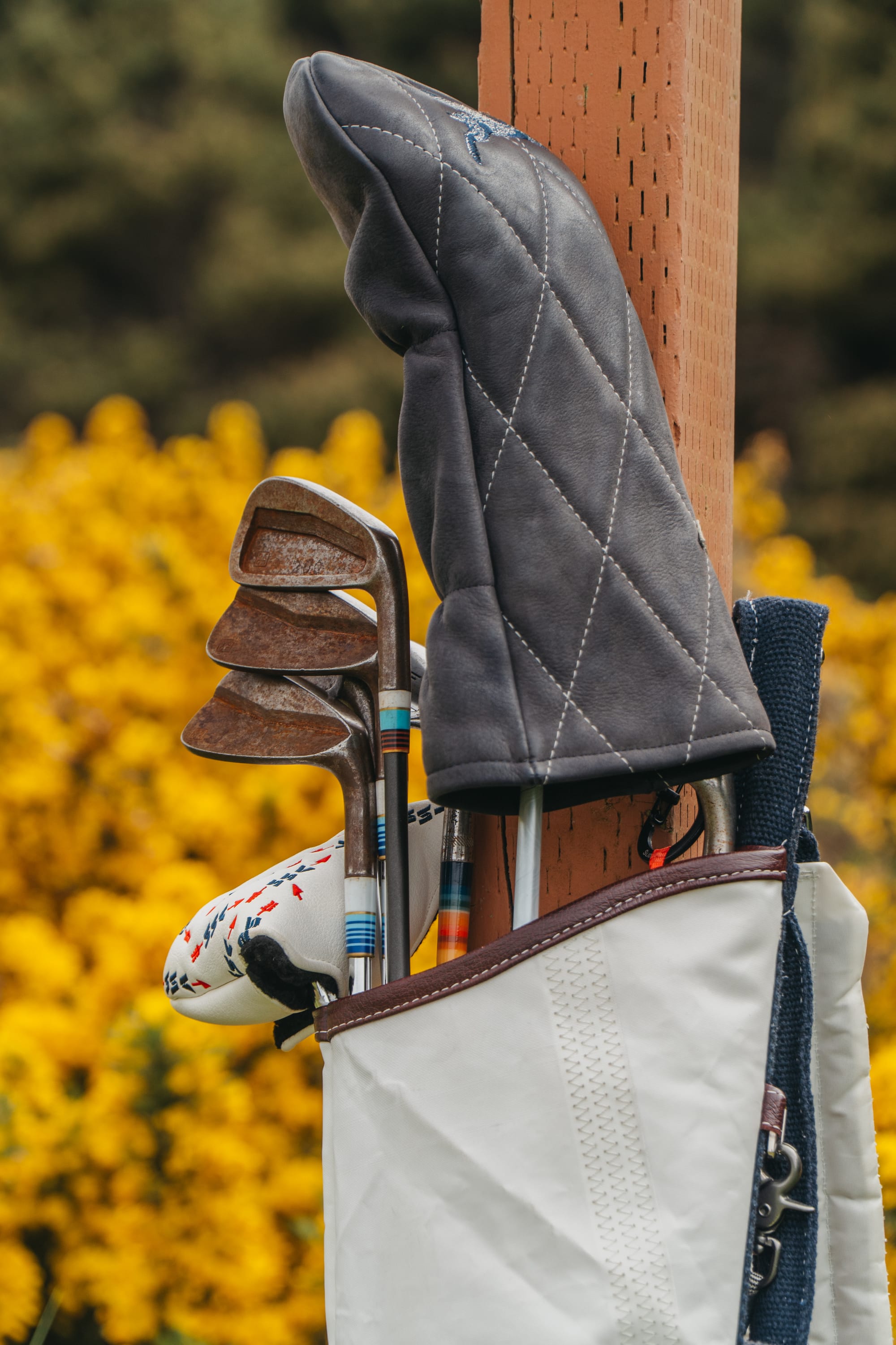 Despite Forewind’s growth, it still feels like a passion project for Mike. There’s no factory or assembly line. He cuts every headcover and bag by hand in his two-car garage, and two seamstresses down the street sew each one. Everything ships from the local post office. “Every headcover, every golf bag, every drawstring pouch, you’ve ever seen, I’ve cut every piece,” he says. “We don’t outsource. It’s all done here in Kittery, Maine.” That level of care means each item carries a personal connection. Forewind has created custom gear from old rain jackets, college golf uniforms, and even family heirlooms.