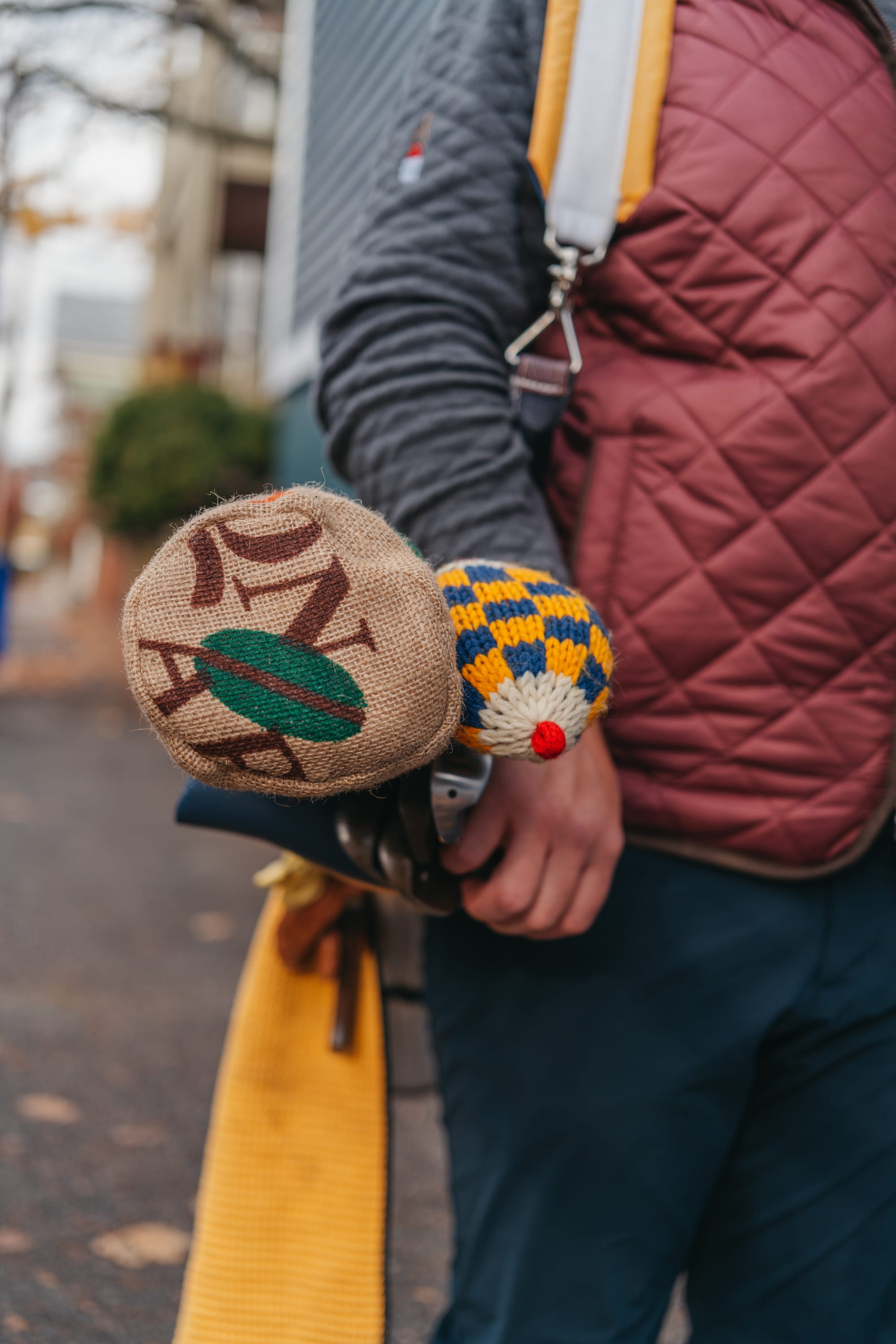 What excited me about Mike and his emerging golf brand was how naturally the story unfolded. In 2013, while enjoying the view of Whaleback Light near their home in Kittery, he and his wife Liz noticed lobster rope washed up on shore. Most people would have ignored it, but they saw potential in the colorful, durable material. Lobster rope is built to withstand the elements, a reflection of Maine’s resilience. They began weaving it into doormats and tote bag straps, quickly running out of material. Fortunately, Liz had connections with local lobstermen and soon had access to thousands of pounds of rope. Alongside the rope came canvas tarps and old sails—materials that deserved a second life. Tote bags were the first product, but Mike, a lifelong golfer, saw another opportunity: headcovers.