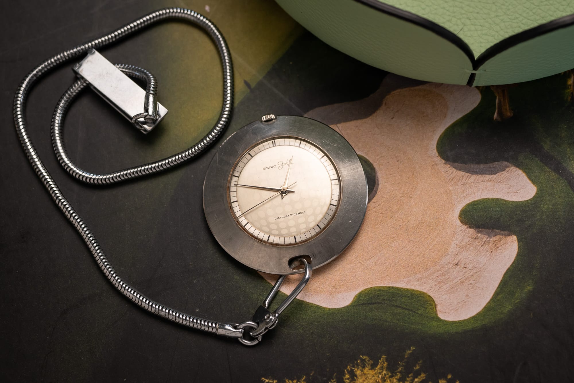 Seiko had its Golf Timer, a compact, pocket watch with golf ball dimples on the dial and caseback, lest you forget what it was for. Seiko eventually made a wristwatch with the same dimple-covered pattern. Meanwhile, Swiss makers, in their characteristic Swiss-ness, leaned into elegance: Patek Philippe made the ref. 788, a slim, sculptural pocket watch from the late 1950s designed with golfers in mind. It was the work of Gilbert Albert, the young designer who would become one of the most daring voices in midcentury watches. This golfer’s watch was one of Albert’s first projects at Patek—an understated but clever piece that hinted at the avant-garde geometries he’d later bring to the brand’s most radical designs.